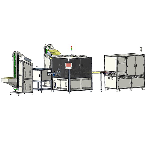 內(nèi)道:外鋁蓋理料機(jī)上料-二維碼讀碼關(guān)聯(lián)-點(diǎn)膠-組裝-沖壓檢測-成品下料-半成品下料